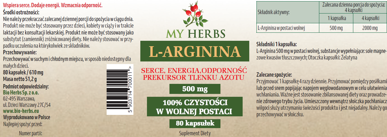 L-ARGININA 500 MG 80 KAPSUŁEK