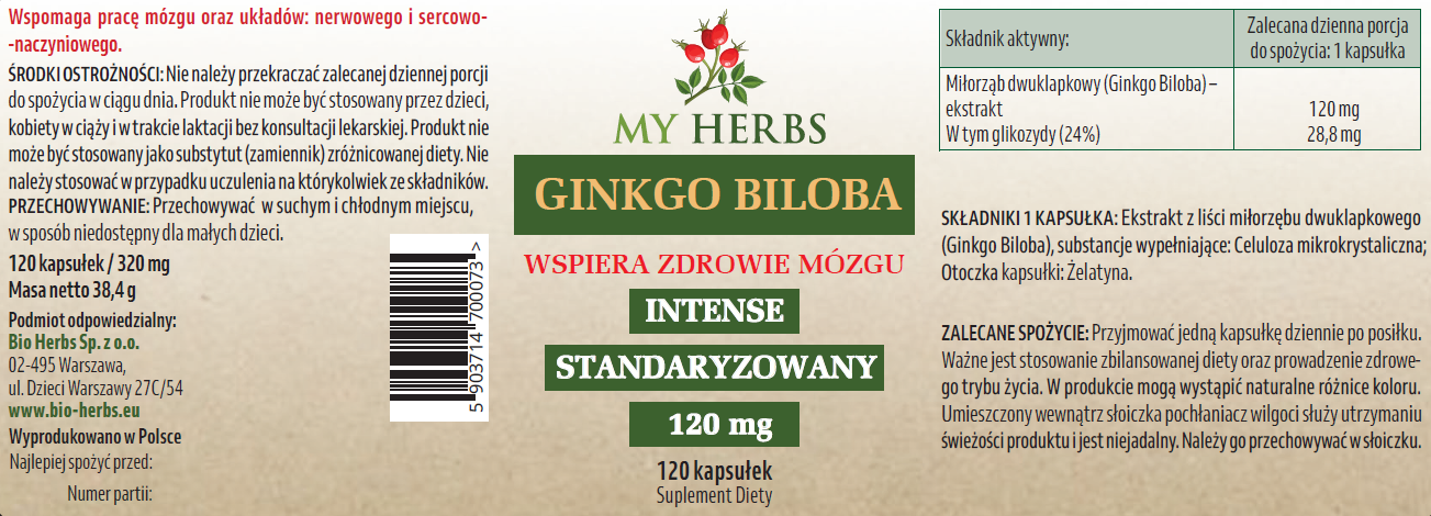 GINKGO BILOBA INTENSE 120 KAPSUŁEK STANDARYZOWANY NA 24% GLIKOZYDÓW FLAWONOWYCH