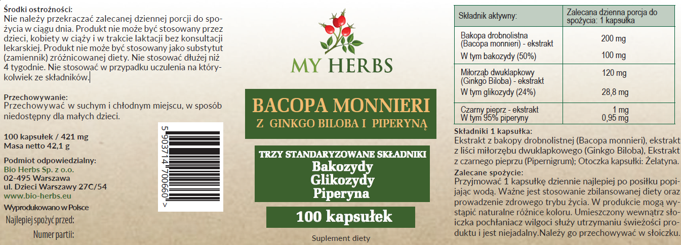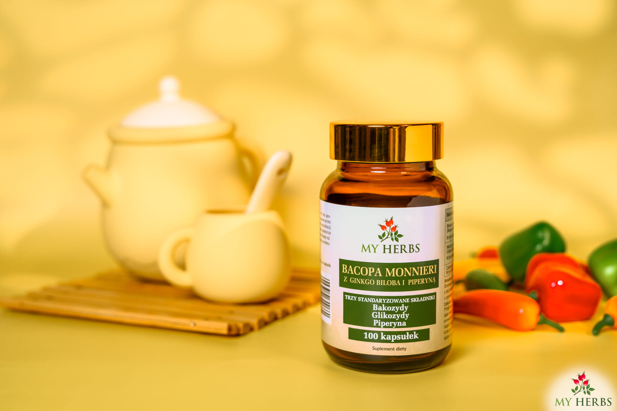 BACOPA MONNIERI Z GINKGO BILOBA I PIPERYNĄ STANDARYZOWANA 100 KAPSUŁEK