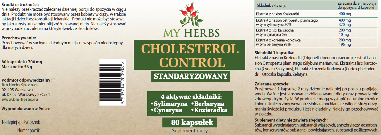 CHOLESTEROL CONTROL, SYLIMARYNA, OSTROPEST, BERBERYNA, CYNARYNA, KOZIERADKA