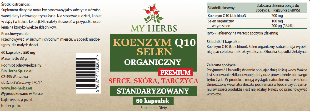 KOENZYM Q10 SELEN ORGANICZNY PREMIUM STANDARYZOWANY 60 KAPS SERCE SKÓRA TARCZYCA