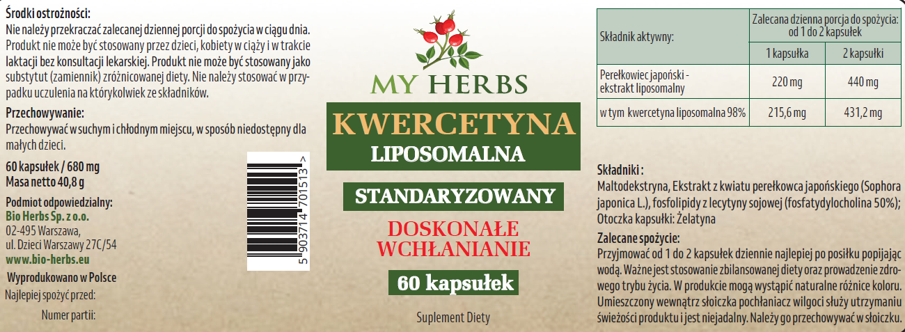 KWERCETYNA LIPOSOMALNA EKSTRAKT STANDARYZOWANY 98% 60 KAPSUŁEK