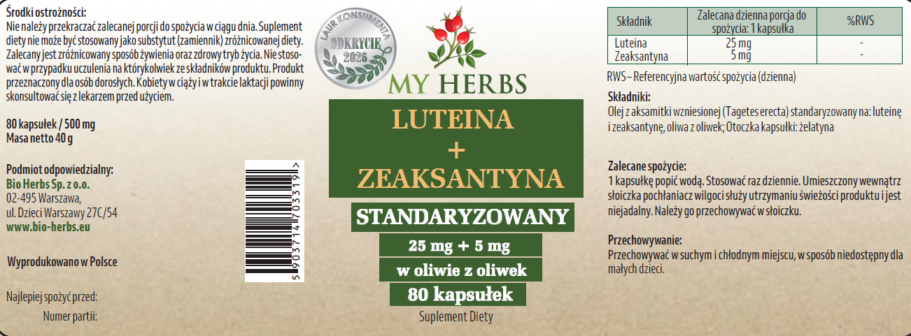 - Wysoka zawartość luteiny – aż 25 mg w kapsułce