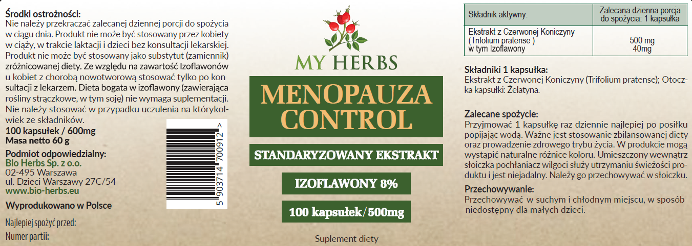 MENOPAUZA CONTROL STANDARYZOWANY EKSTRAKT NA 8% IZOFLAWONÓW 100 KAPSUŁEK
