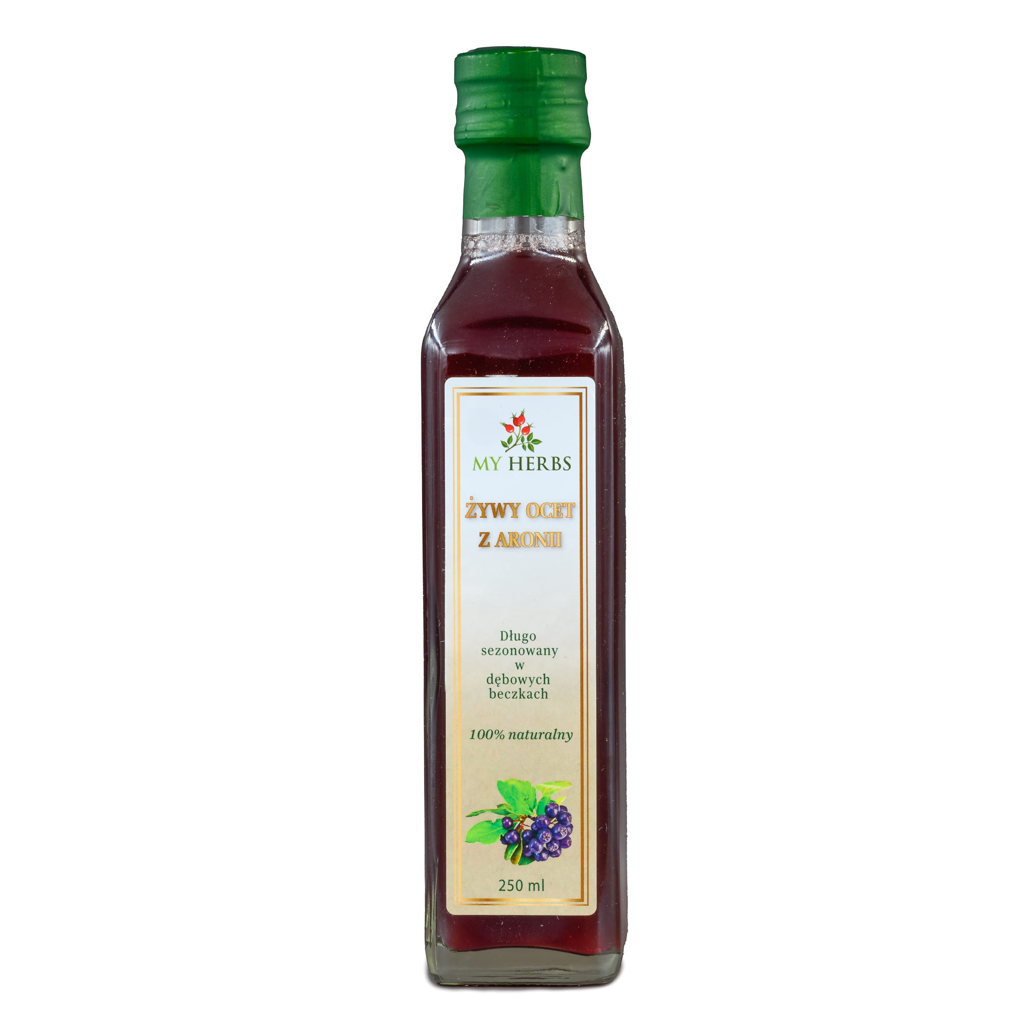 Ocet z aronii ma silne działanie antybakteryjne, antyseptyczne, przeciwdrobnoustrojowe oraz pomaga odgrzybiać organizm. Wspomaga organizm w obniżeniu poziomu cholesterolu i trójglicerydów we krwi, co bardzo korzystnie wpływa na nasz układ krążenia. Dodatkowo ocet pomaga obniżyć poziom cukru we krwi.