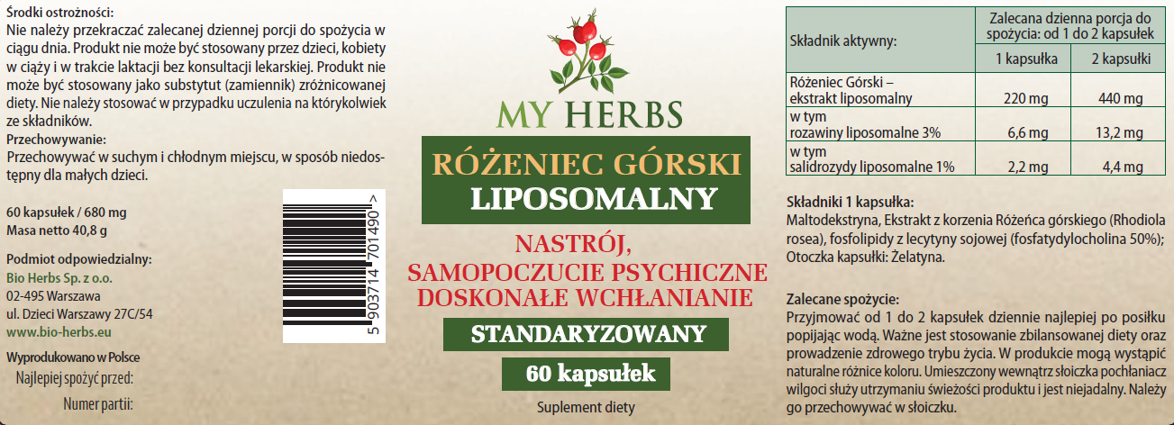 RÓŻENIEC GÓRSKI LIPOSOMALNY 60 KAPSUŁEK ADAPTOGEN