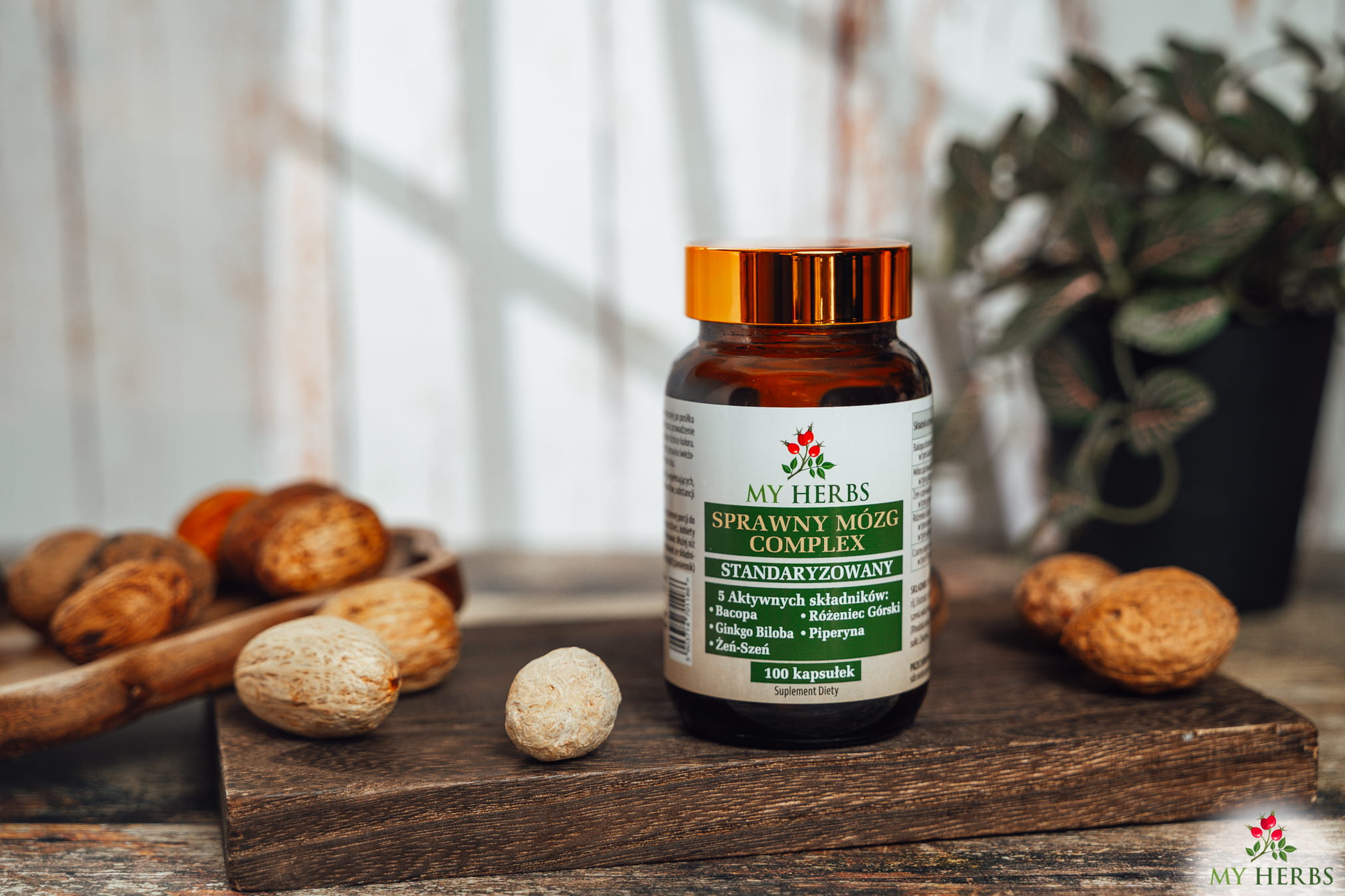 Ekstrakt z bakopy drobnolistnej (Bacopa monnieri), Ekstrakt z liści miłorzębu dwuklapkowego (Ginkgo Biloba),Ekstrakt z żeń-szenia właściwego (Panax ginseng), Ekstrakt z korzenia Różeńca górskiego