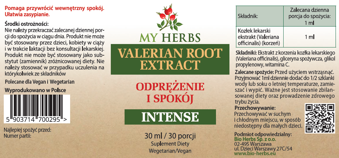 VALERIAN ROOT EKSTRAKT HOMOGENIZOWANY W KROPLACH 30 ML