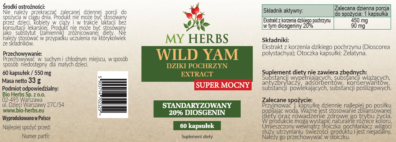 WILD YAM EXTRACT DZIKI POCHRZYN SUPER MOCNY STANDARYZOWANY 60 KAPSUŁEK