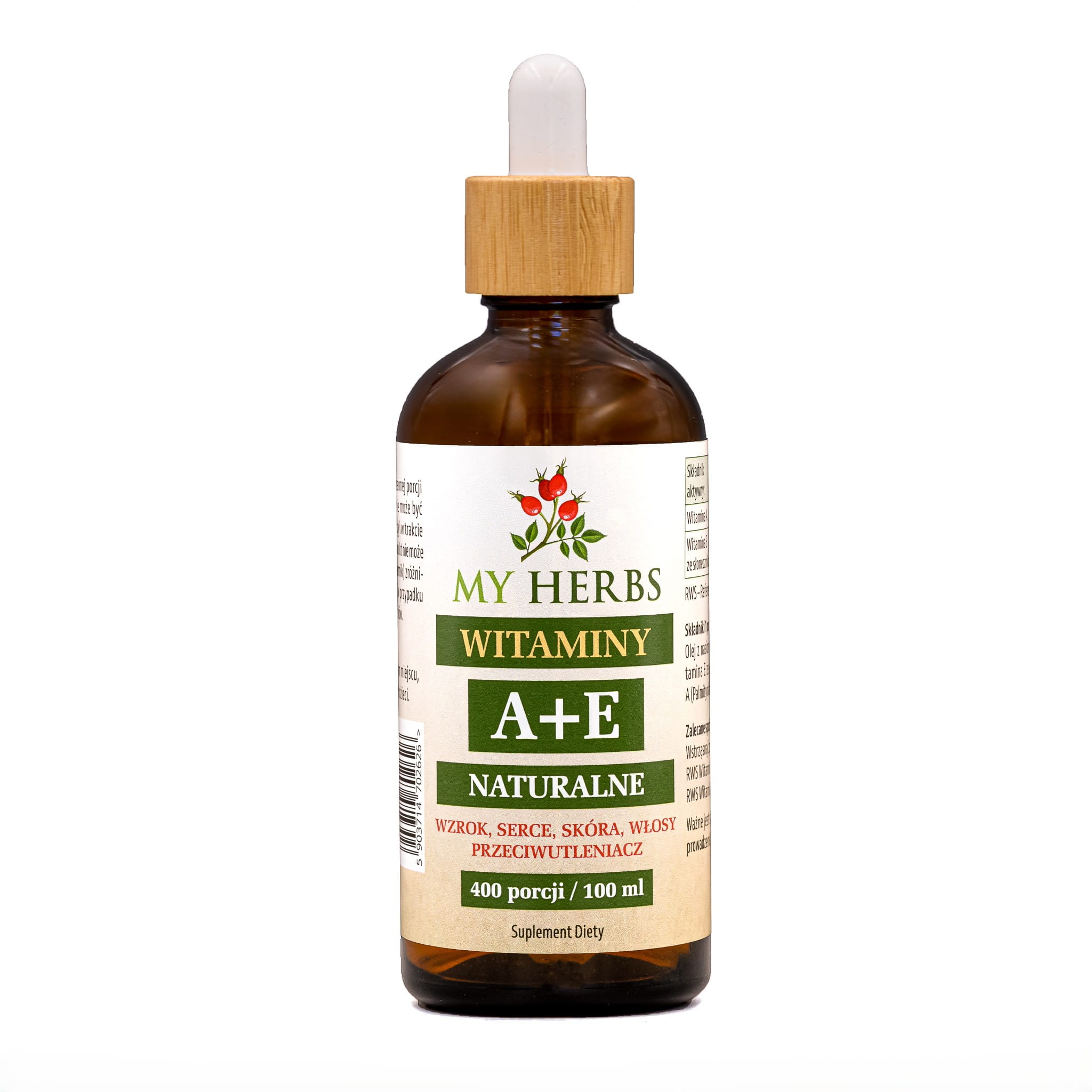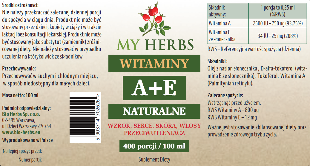 WITAMINY A+E NATURALNE 100 ML 400 PORCJI SKÓRA WZROK SERCE