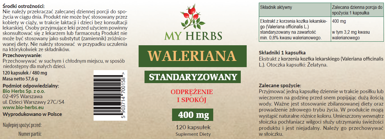 Skład suplementu diety Waleriana 400 mg